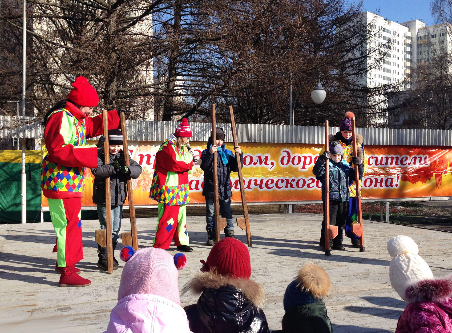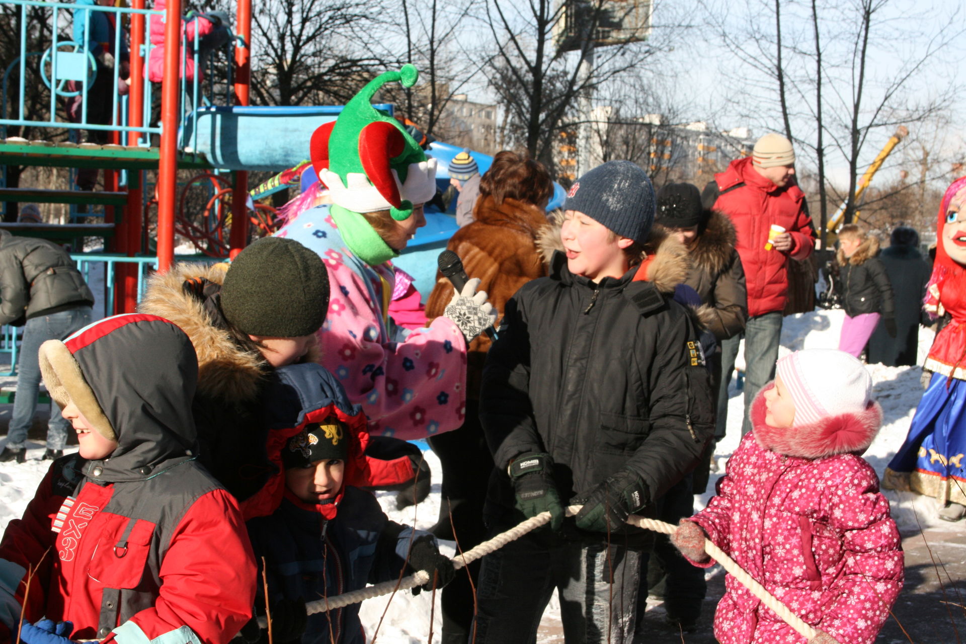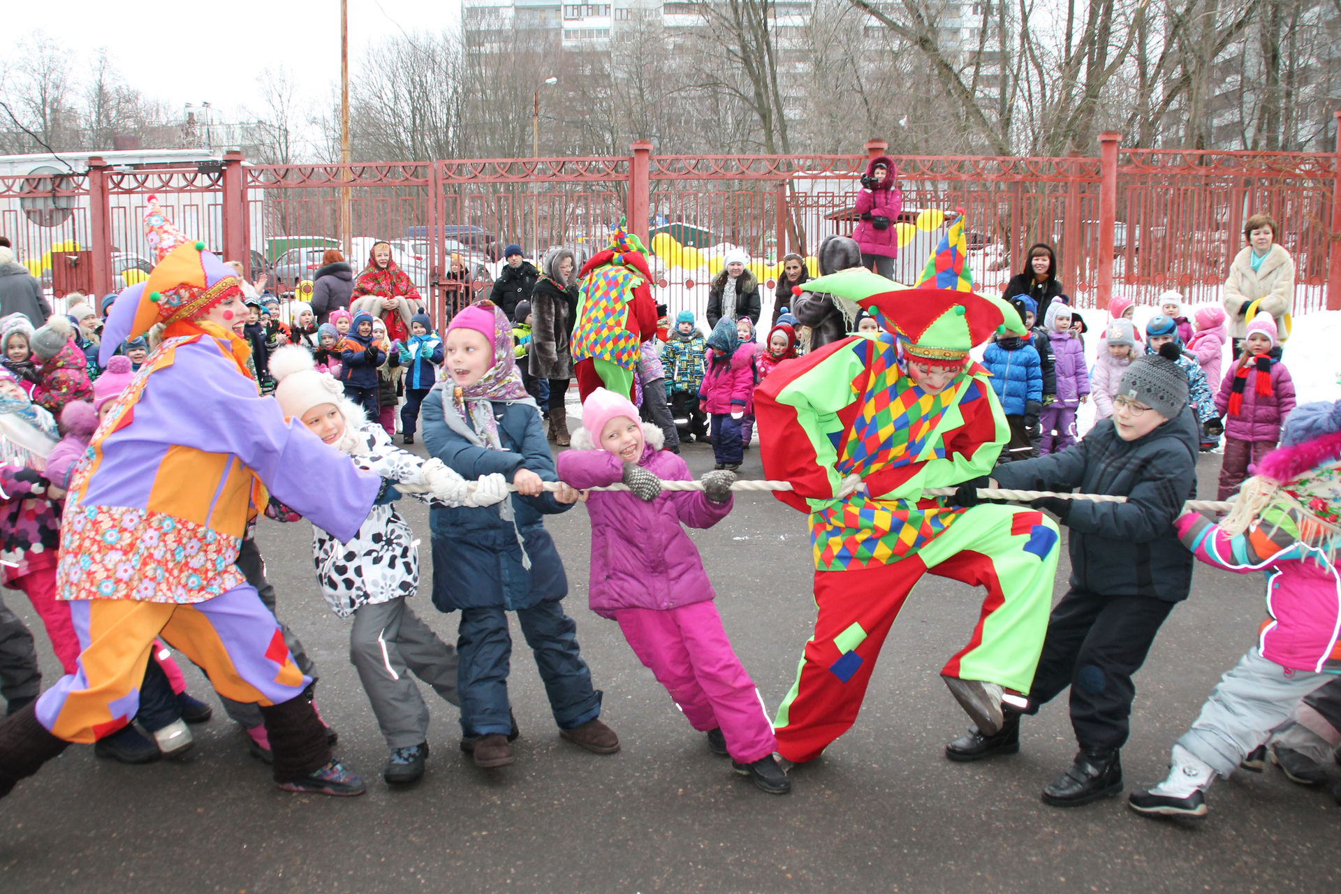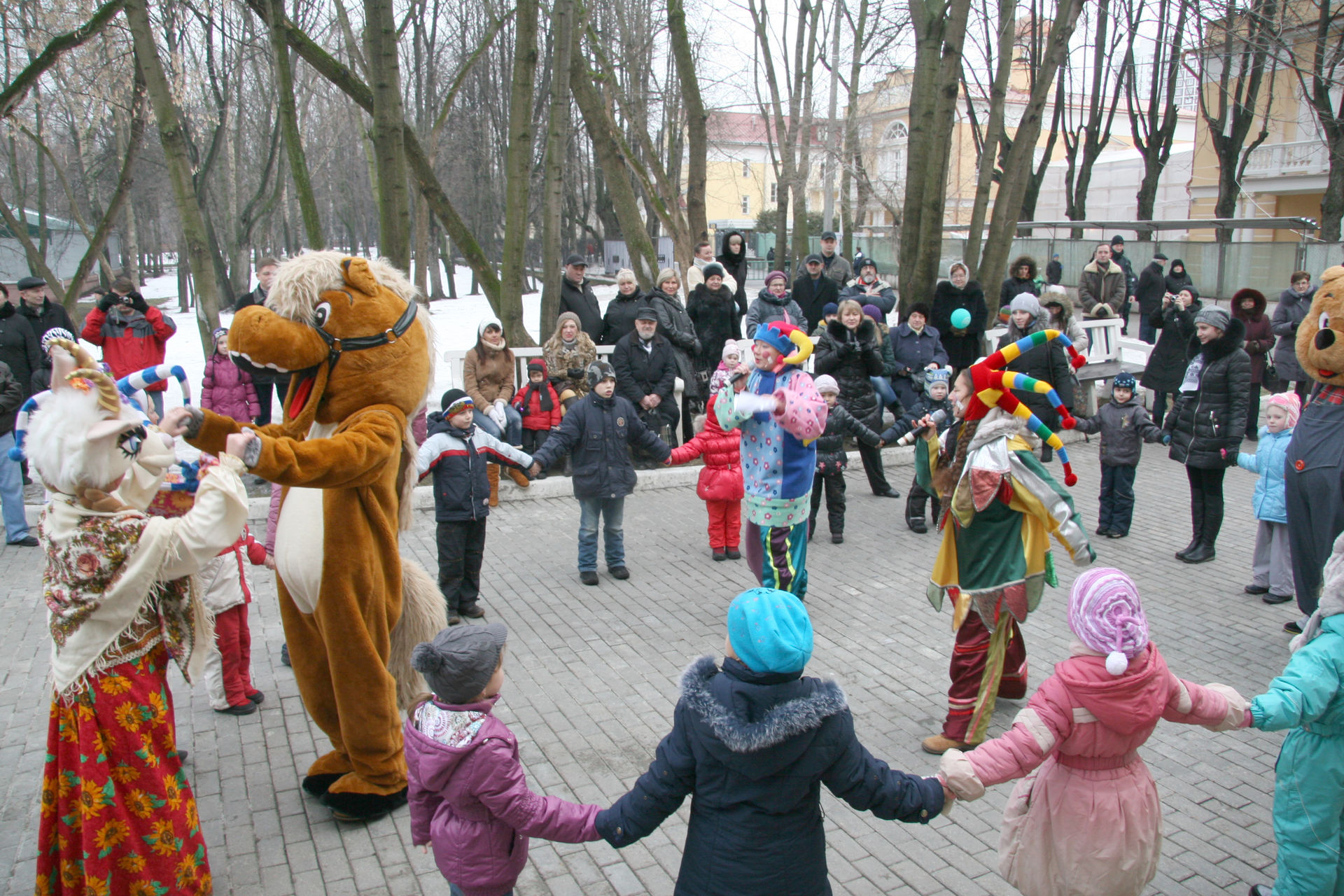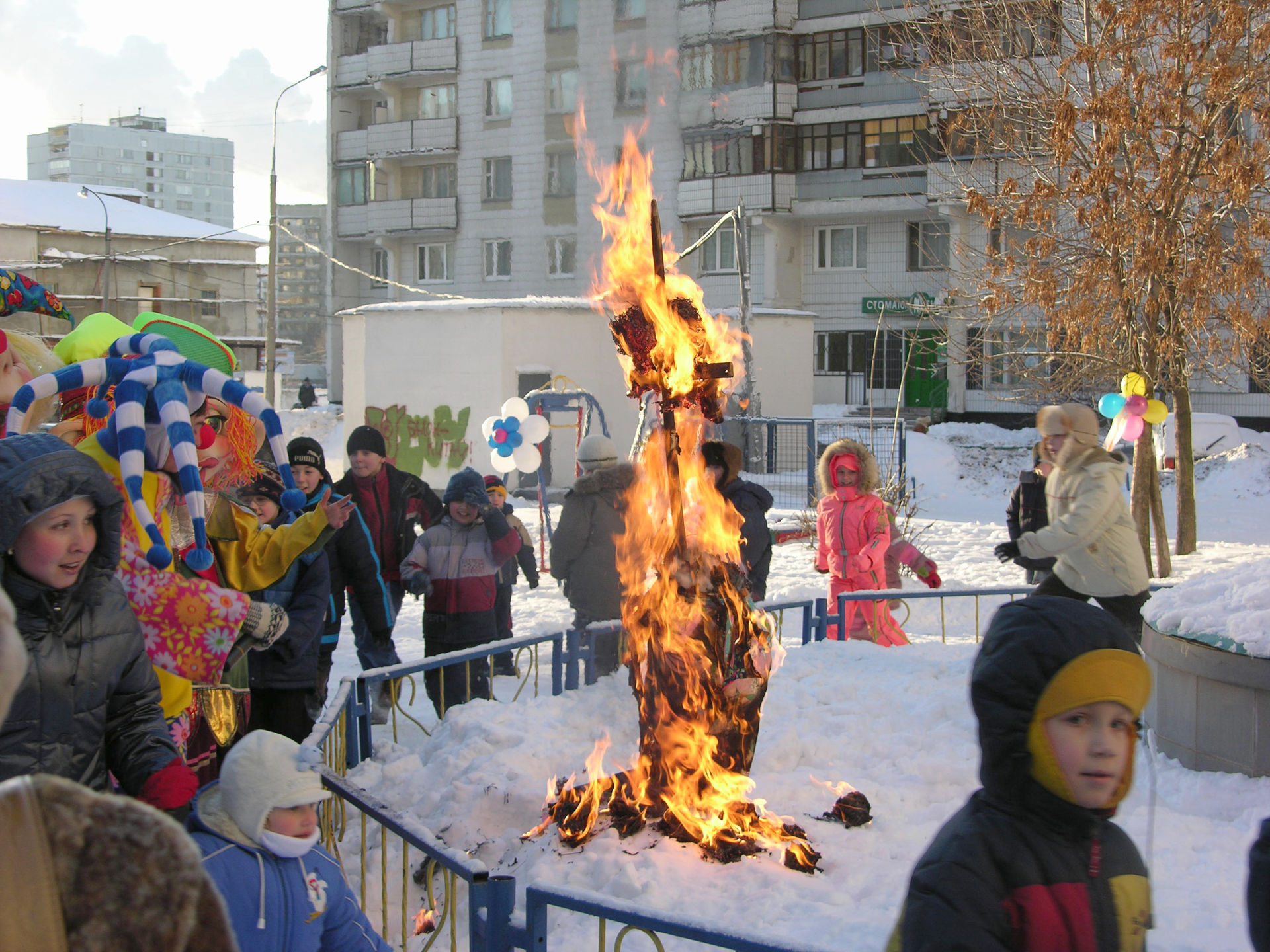 Забавные ростовые куклы, задорные аниматоры и скоморохи развеселят всех гостей праздника, проведут шуточные соревнования и конкурсы, расскажут об обычаях и традициях русской Масленицы. Масленица на дворовой площадке - это оптимальный способ провести экономичный праздник, повеселить ребятишек и порадовать жителей небольшого района.