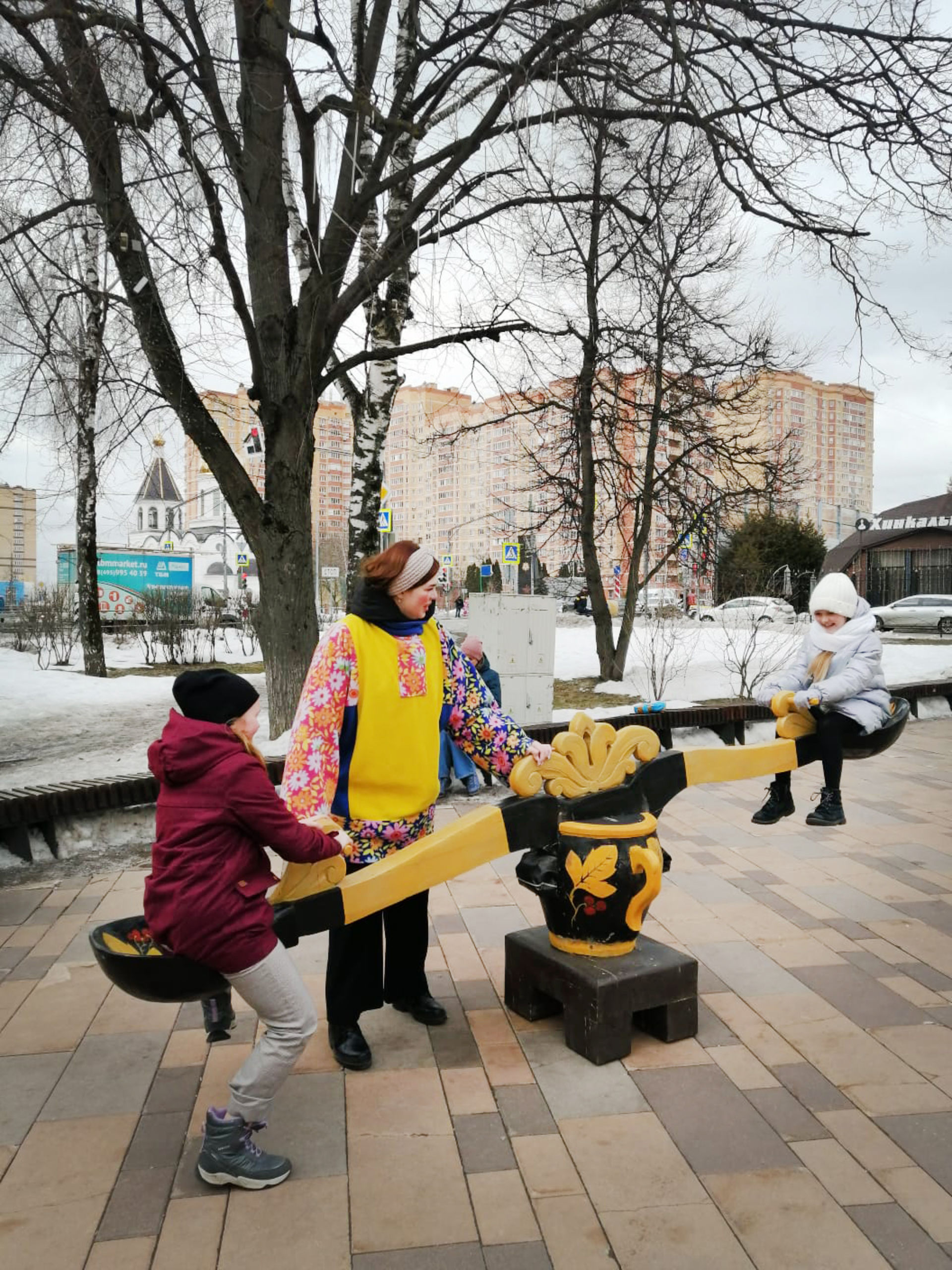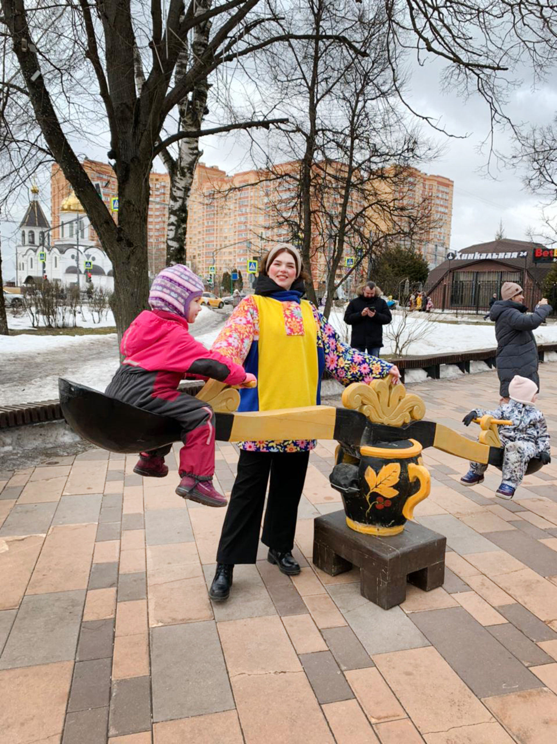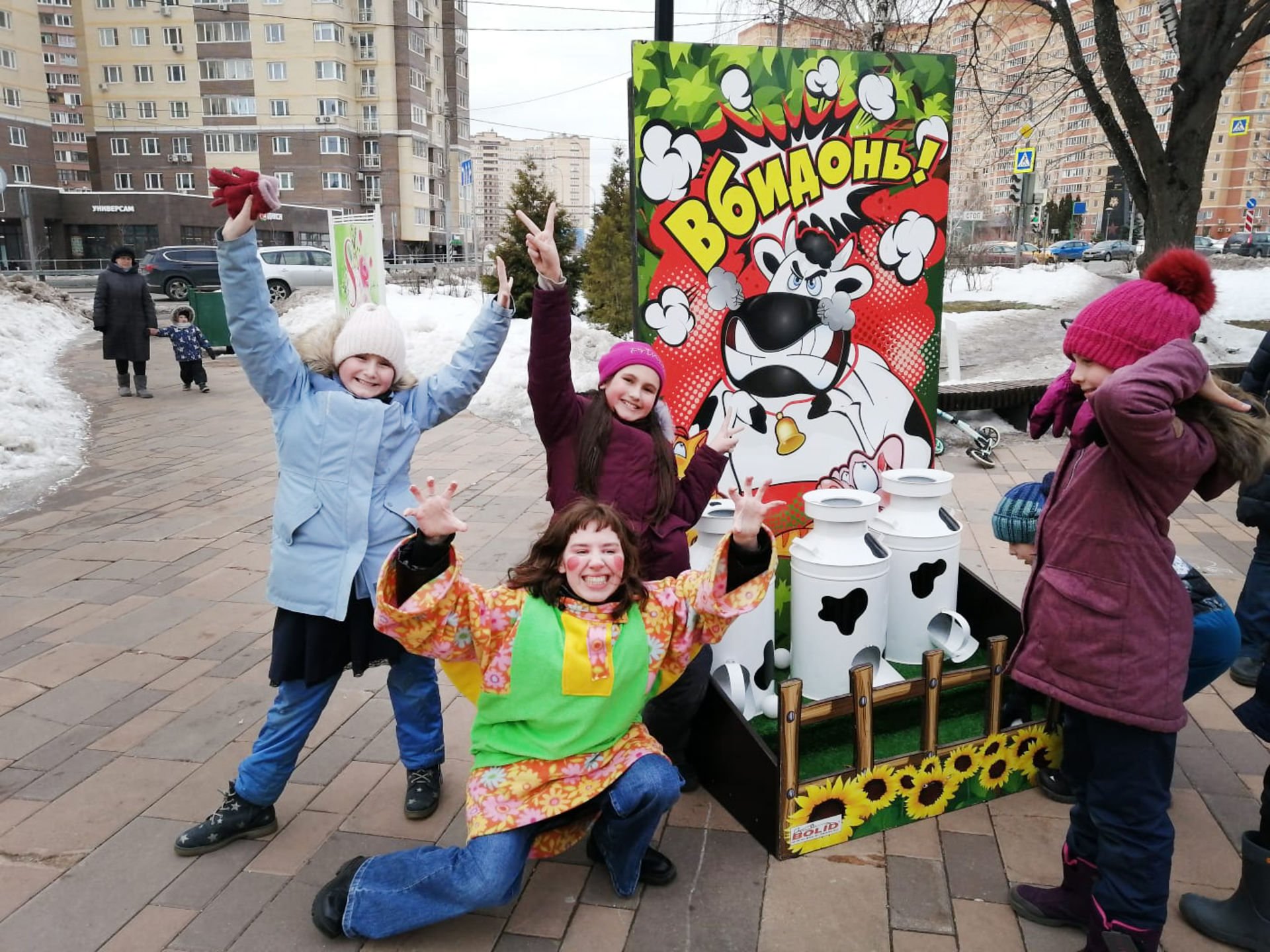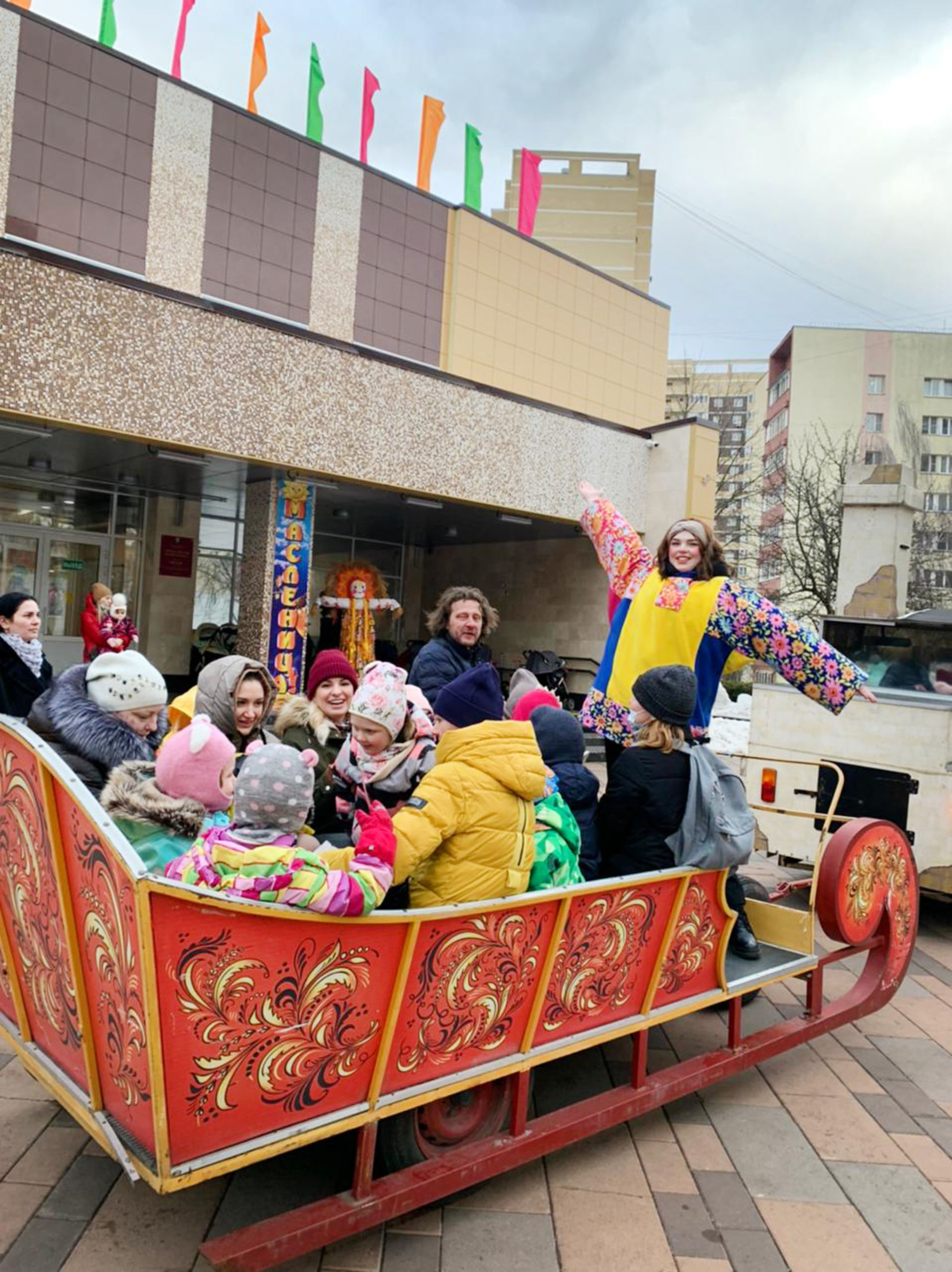 Для организации Масленичных гуляний в поселке Коммунарка компания КИНДЕР-МАСЛЕНИЦА предоставила аниматоров-скоморохов и аренду аттракционов в русском стиле: